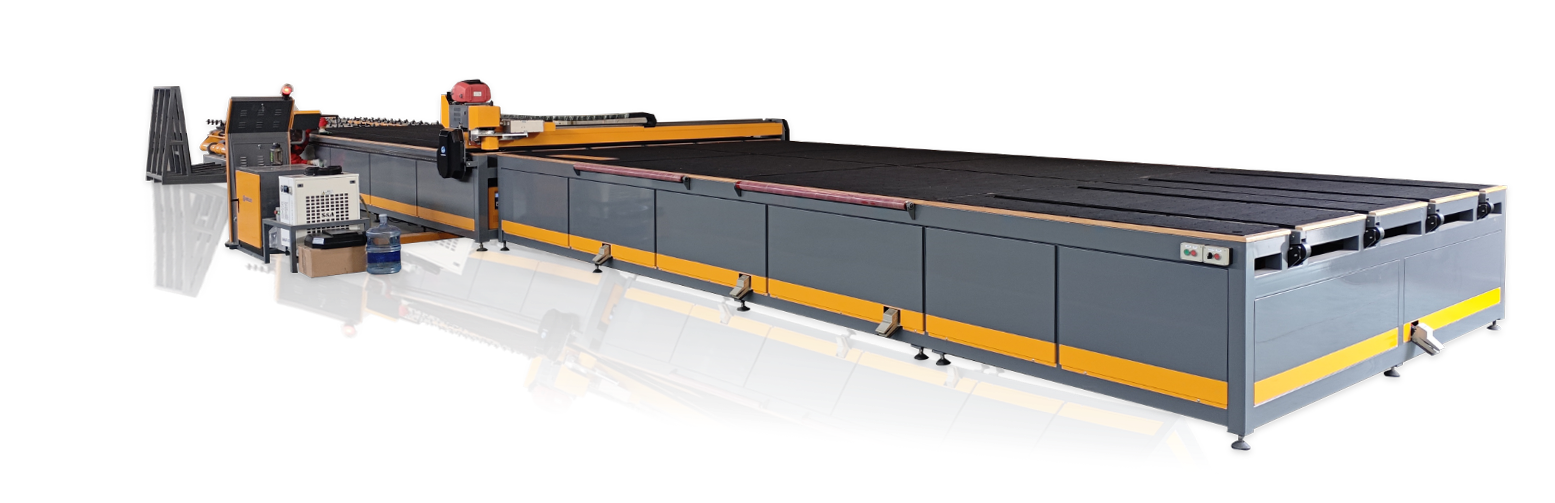 The equipment integrates mechanical design, automatic control and precision processing technology, adopts advanced CAD/CAM integrated system, supports automatic graphics conversion and real-time operation, and can efficiently complete glass cutting, typesetting, slicing and other processes.